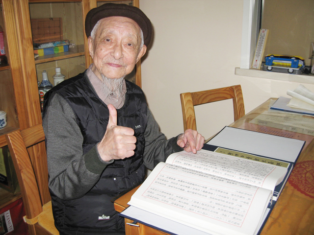 2011年,江苏省中医院为父亲举办了百岁寿诞,父亲的忘年交(原卫生部崔月犁部长之子)张晓彤先生,深知父亲一生痴书,特赶印线装带函套扣式《祖望百岁养生秘籍》精品收藏书,以替父亲作为礼品回赠来宾。当父亲面对几大箱特殊礼品时,眉开眼笑像揽独食的孩童唠叨着:“你们千万别送完,得给我留下两本啊!”我仍清楚记得,父亲在宴会上的答谢辞:“希望大家和我一样活到百岁!”此景此情难以忘怀。父亲在95岁切生日蛋糕时,要求我们在他过了百岁后,生日年龄得重新从一岁起计,于是父亲百岁后,每逢生日,蛋糕上的年龄变成了“1岁、2岁……”当我们希冀还有两个月又可为老人插上“4岁”生日蛋糕时,父亲却病了,遵照他留下的亲笔遗书,要求病危时,医院不必抢救,老人安详地离开了我们,国医大师邓铁涛前辈按照父亲诗而题挽联:干老驾鹤上太空,杏林处处发新芽。