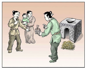 (2)没想到登门看病的人很多,留下的药很快用完。弟子只好把院中烧饭的干柴切碎装成包,这种干柴嚼起来有一种甜味,弟子认为可以冒充成药。
