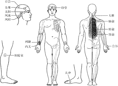 头颈部:头维、百会、印堂、太阳、风池、风府。