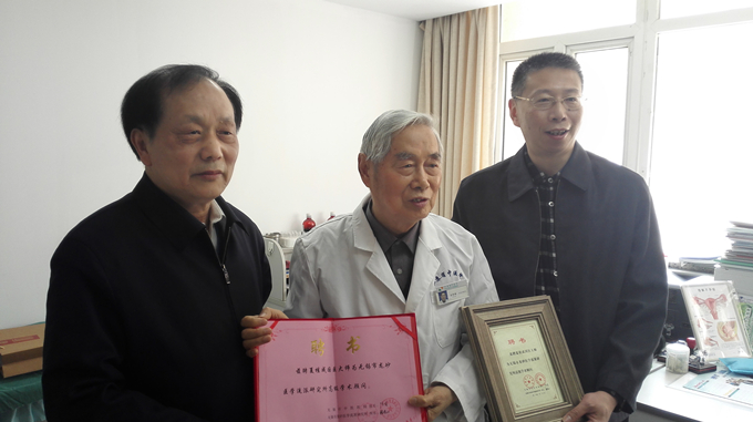 国医大师夏桂成受聘为无锡龙砂医学流派研究所高级学术顾问,左起顾植山、夏桂成、陆曙