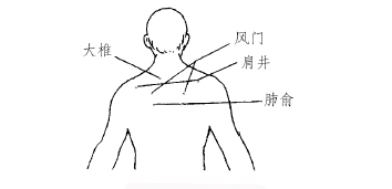 按摩手法 按揉大椎、风门、肩井、肺俞各穴50~100次,力度以酸痛为宜。