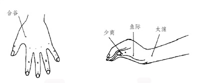 按摩手法 点揉太渊、鱼际、少商、合谷等穴各30~50次,力度适中。