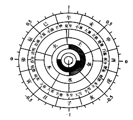 长期以来,由于受西方学术思想的影响,中医教育在某些方面存在一定的问题。首先是怀疑中医是不是科学,继而企图用西医改造中医,作为中医理论基础的阴阳五行学说也被扭曲成为五种物质,完全违背了中国传统的“气一元论”的观念,殊不知所谓五行,原本是阴阳二气周期性相对变化的五个不同的阶段,即如无字天书“河图”(见图2)所示,以中气(即阴阳未分的混沌之气)为枢轴,阳气由西北方向东南方(在人体则是由右下方向左上方)升化为火,半升则为木;阴气由东南方向西北方(在人体则为由左上方向右下方)降化为水,半降则为金;中气化为土。