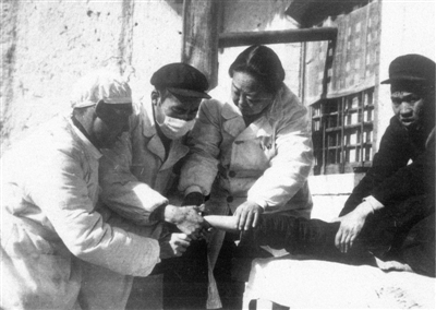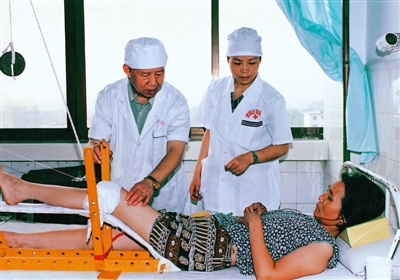 河南省洛阳正骨医院(河南省骨科医院)创始人、平乐郭氏正骨第五代传人高云峰(右二)在做临床教学。