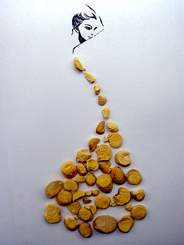 你能想到从医院捡药窗口出来的饮片经过一两个小时的加工,大概是黑乎乎的药汤和一堆再也分不清彼此的药渣了吧?不!成都中医药大学临床医学院老年病与呼吸方向2015级研究生康雯霖同学可不这么想!脑洞大开,她把药材穿在美女身上,那就是一套一套华丽的礼服啊!陈皮切条,居然做成了吊带裙,这时尚感也是没sei了。法半夏做成了曳尾长裙,还是清新的鹅黄色呢!枸杞做成的头饰,是少女最爱的花骨儿,酒红色的配饰提升气质嗖嗖滴!晒干的荷叶做成的吊带小A裙竟也有清新脱尘的赶脚 。裙子的原料用黄柏,亮点是深V哦! 金银花就比较好用了,不仅可以做成蝴蝶结提升露肩装的少女感,也可以做成发夹别在耳后哦!一身玫瑰花做成的裙子让你分分钟脑补了奥黛丽•赫本的气质。还有山药做成的裙子很容易让人想到亮片的元素,颜色blingbling的,时尚度很高哦!哈哈哈哈,野菊花做成的裙子,露得有点多。薏苡仁不仅做成了一条不规则裙摆的露肩美裙,还顺带制作了一顶洋气的礼帽! 银耳的质地很容易让人想到流苏和雪纺的元素嘛,总之就是很仙的款式。