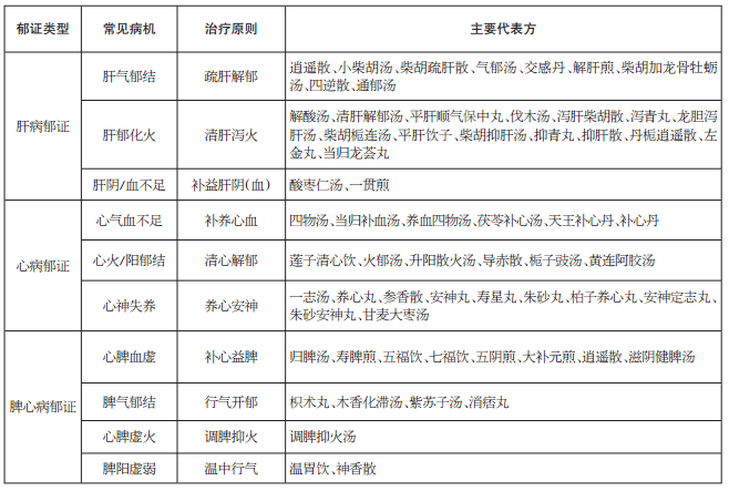 从郁论治原则与方药(见表)。