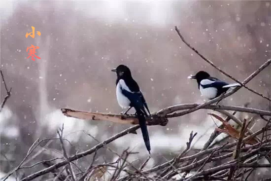 初候雁北乡,小寒二阳之际,虽然是冰天雪地,但是阳气已动,因此候鸟大雁感阳出现向北飞的迹象。二候鹊始巢,禽鸟最早得知气候变化,此时喜鹊已得来年之气,开始衔草筑巢,准备孕育后代。三候雉始鸲,羽毛漂亮雉鸟也被称为“阳鸟”,它们会感阳气的萌动而雌雄同鸣。