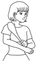 步骤二:用中指点压住患侧的疼痛点,活动肩膀,活动幅度从小到大,反复活动疼痛会有明显减轻。(见图4)