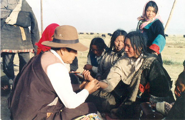 而药剂科的大夫安华先,则是在病房前的果树下寻一块大石头,铺上羊皮垫子,露天办公。解决了场地问题,一个更为棘手的问题摆在他们面前。当时分配到药房发药的员工并不识藏文,他从专家们手中接过写满藏文的处方,一脸愁容,不知从何下手。