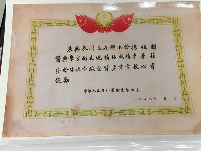 1956年,朱兴恭出席了陕西省中医药学术会议,推广了朱氏正骨技艺。同年9月,省政府特调他到陕西省中医研究所(现陕西省中医药研究所)任骨科医师,代理骨科主任。还受聘担任西安医学院兼职副教授。1957年,加入农工民主党,次年又被中国医学科学院聘为特约研究员。先后出席了全国“卫生先进工作者交流会”,“文教群英会”。百余年来,“朱氏三宝”——展筋丹、接骨丹、热敷药为无以计数的骨病患者送去了福音,朱老先生也因此受到了周恩来总理、毛泽东主席及其他党和国家领导人的接见,并多次被评为全国卫生系统的先进个人,荣获国家前卫生部及陕西省政府的奖状及金质奖章。