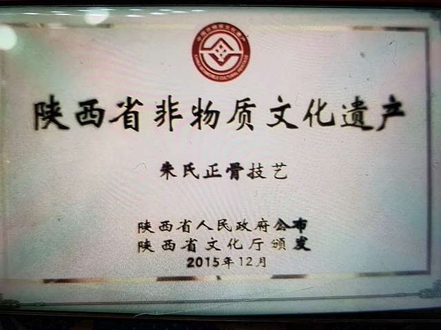2015年,朱氏正骨技艺正式成为“陕西省非物质文化遗产”。“我最大的希望就是朱氏骨伤能够永远传承下去,并且发扬光大。”朱勇旗说。