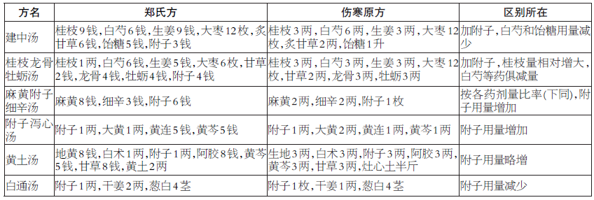 郑氏附子方中的伤寒方与伤寒原方比较