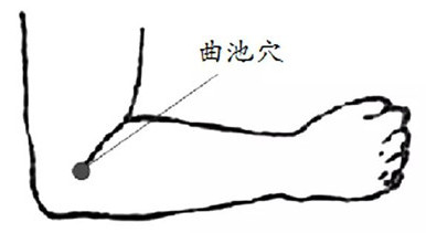 屈肘成直角,当肘弯横纹尽头处;屈肘,于尺泽与肱骨外上髁连线的中点处取穴。