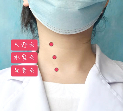 笔者使用调节甲状腺功能的这组穴位是:人迎穴、水突穴、气舍穴。