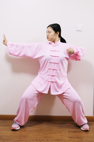 调息:逆腹式呼吸,两手上升时吸气,拉弓时呼气,拉弓如满月,停顿时屏息。