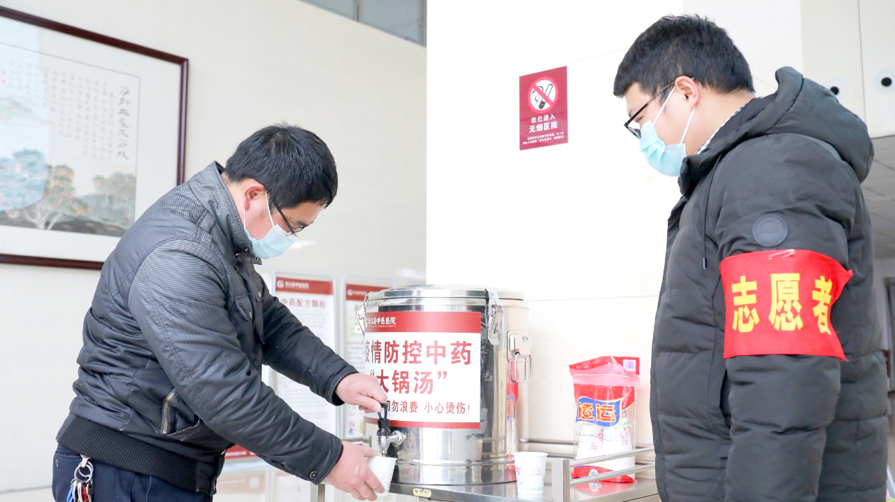 四川泸州合江县中医医院为市民免费提供防疫中药“大锅汤”。