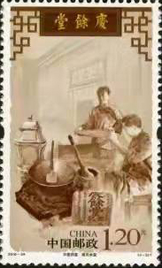 2010年11月20日,中国邮政发行2010-28《中医药堂》特种邮票1套4枚,分别展示了北京同仁堂、杭州胡庆余堂、苏州雷允上、广州陈李济等4家老字号。它们是众多中医药堂的佼佼者,是大家公认的最有名的中医药堂。其中第二枚图案为胡庆余堂,画面近景为制药器具金铲银锅(胡庆余堂镇馆之宝)、制药工具和胡庆余堂清代的纯黑驴皮胶包装广告纸,中景为作坊制作药丸的场景,上方为“庆余堂”牌匾,背景为胡庆余堂店铺外景。