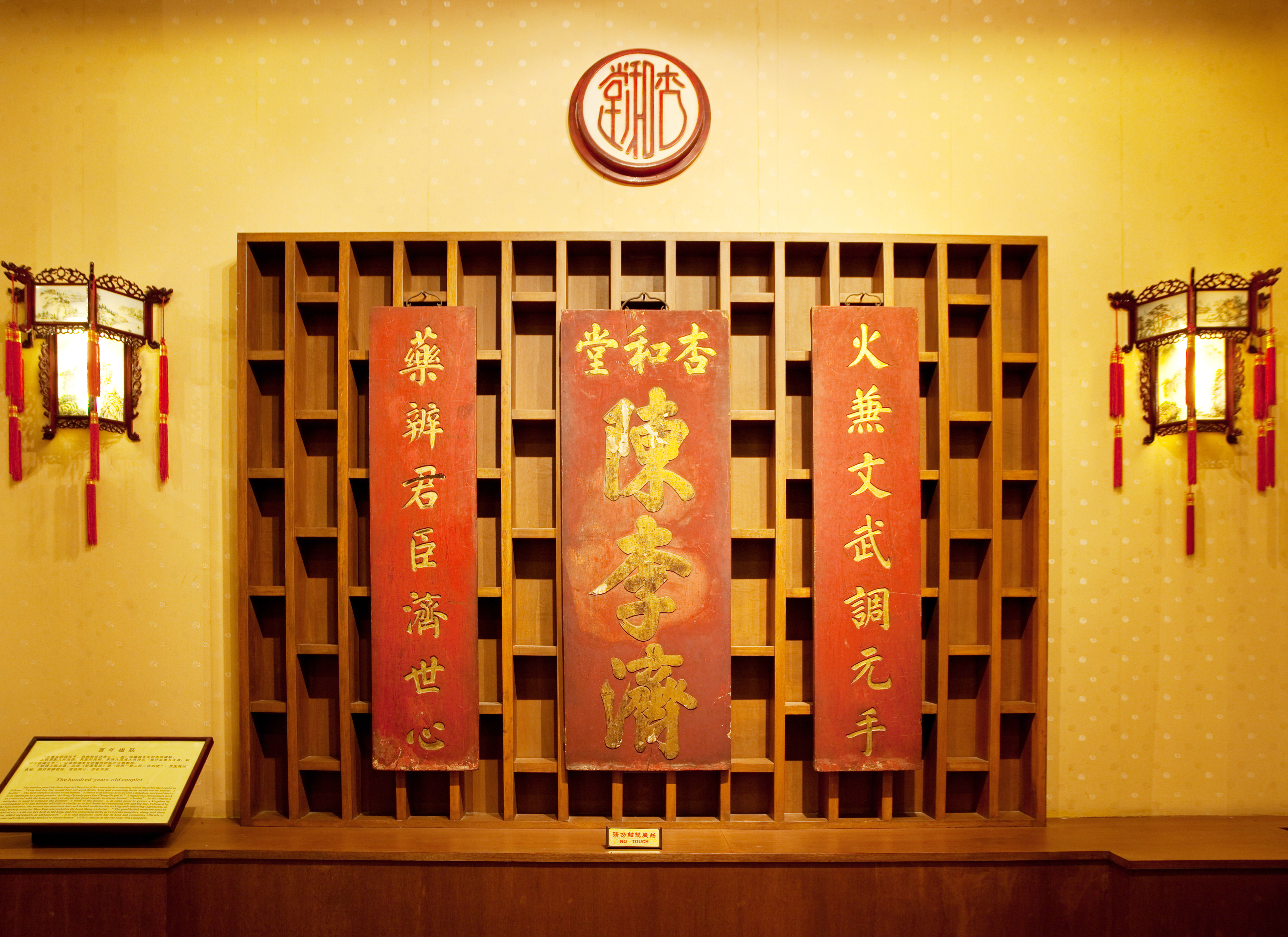 陈李济中药博物馆内,藏有陈李济数百年来的珍贵文物,如明代的青花将军坛、清代的斗彩贮药瓶。古色古香的酸枝木药柜上,刻着“苏合丸”“白凤丸”“宁坤丸”等药名。馆内有一副木质楹联牌匾,至今已逾百年,上面刻着陈李济“火兼文武调元手,药辨君臣济世心”的制药工训,规定了陈李济人做人和做药的准则,也明确了一个制药企业和制药人应该坚守的责任。博物馆里还收藏着一本药书《良药集》,泛黄的纸页记载着陈李济享誉市场的古方正药,如参茸白凤丸、千金保孕丸、乌鸡白凤丸、养心宁神丸等。据陈李济的产品目录牌匾可知,陈李济的药品涵盖人生各个阶段的用药需求。