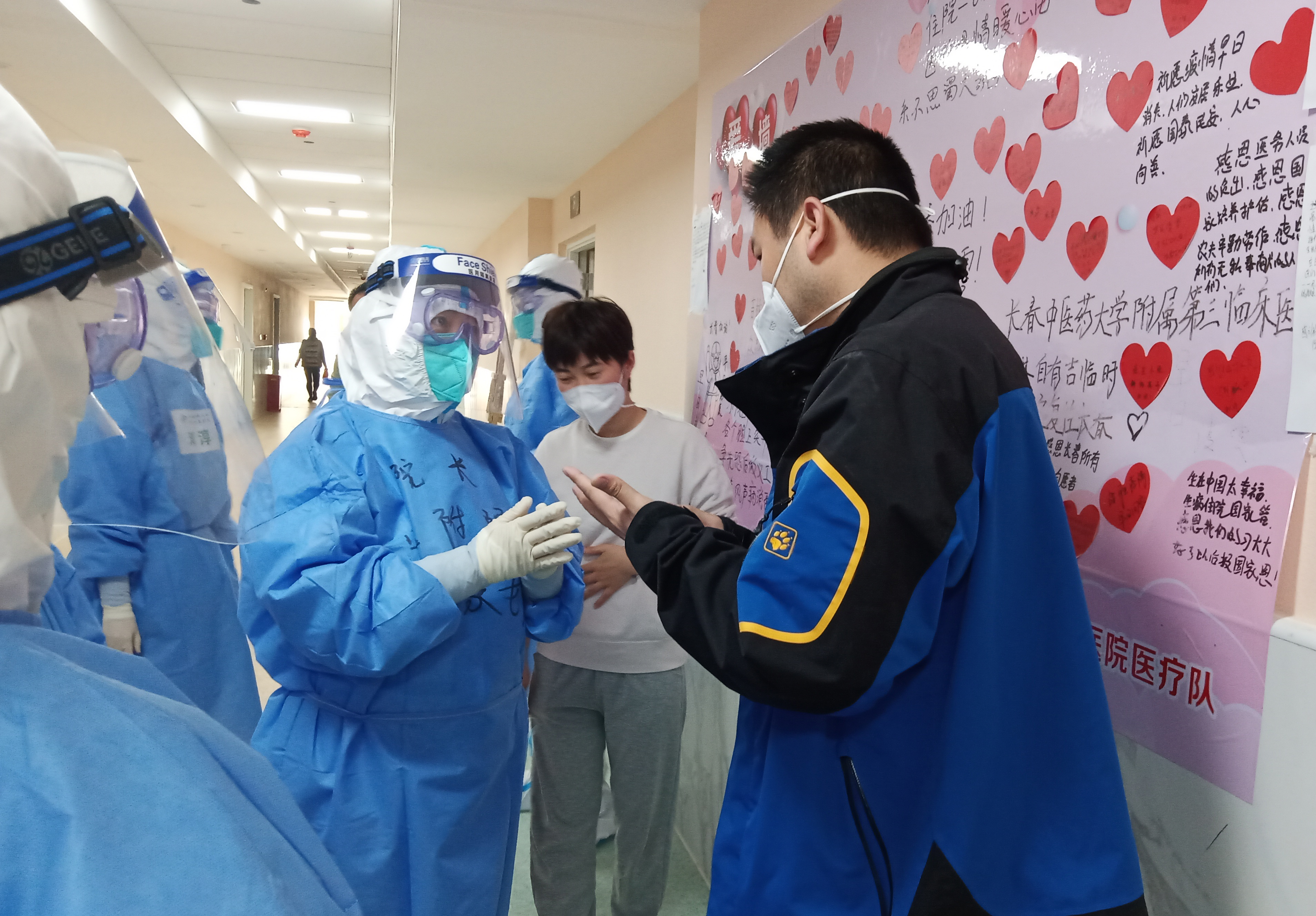 长春中医药大学党委书记江凤艳、校长冷向阳通过视频连线慰问一线医护人员。