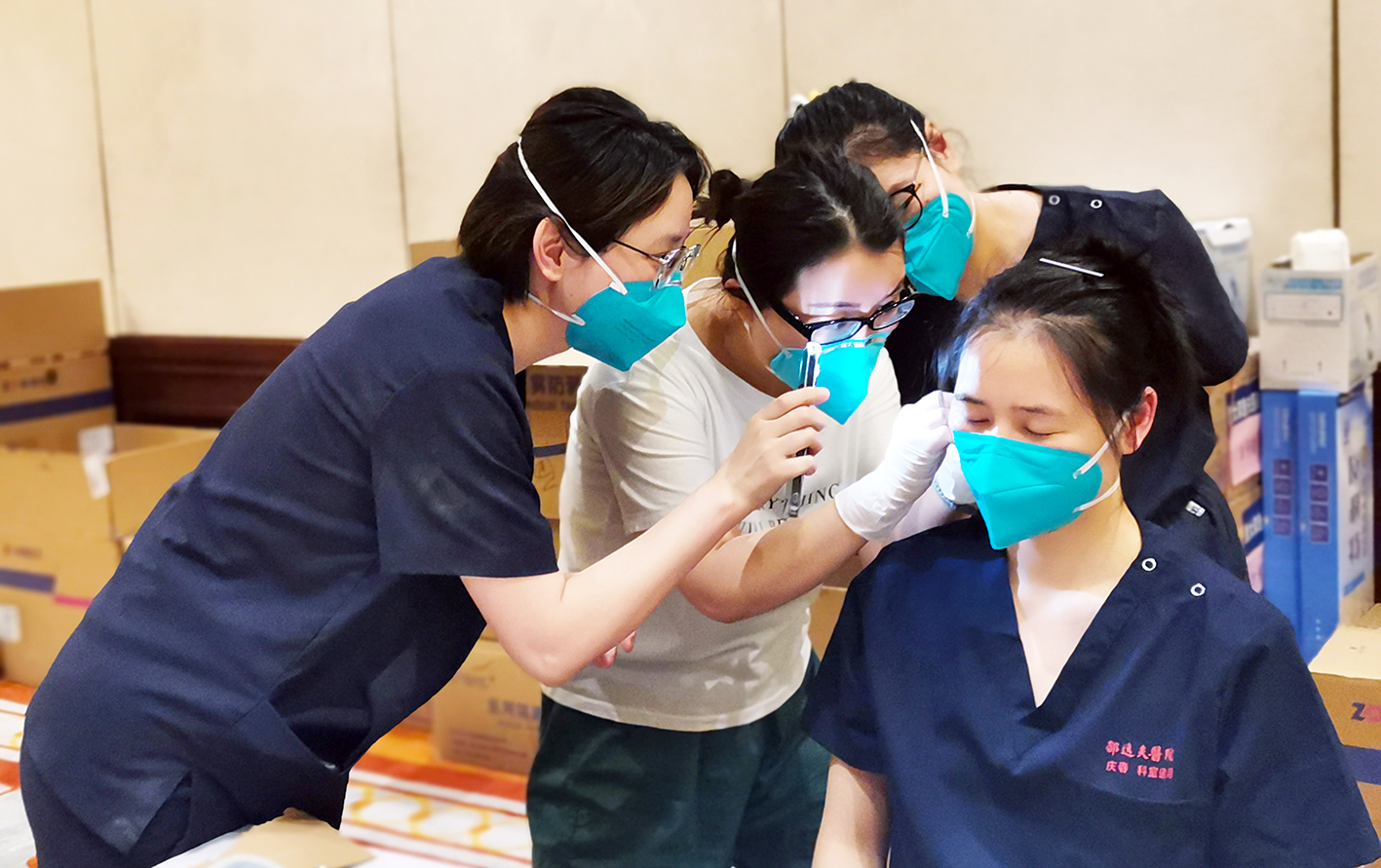 “刚到上海方舱时,由于连日的反常高温,紧张的情绪、睡眠的不足,加上长期身着憋闷的防护装备和连续作战带来的疲惫,一些队员出现了头痛、腹泻、中暑等症状,这严重影响了医疗队的‘战斗力’。”陆姝姝说:“当时我就想到,为何不用中医外治法和中医护理技术,帮助队友们缓解一下这种状态?”这一想法得到了大家的一致支持。于是,陆姝姝拿出来沪时准备的“百宝箱”。耳穴贴压、刮痧、耳尖放血、耳穴操……这些简单实用的中医适宜技术,使队友们的症状明显好转,这让陆姝姝感到无比振奋。
