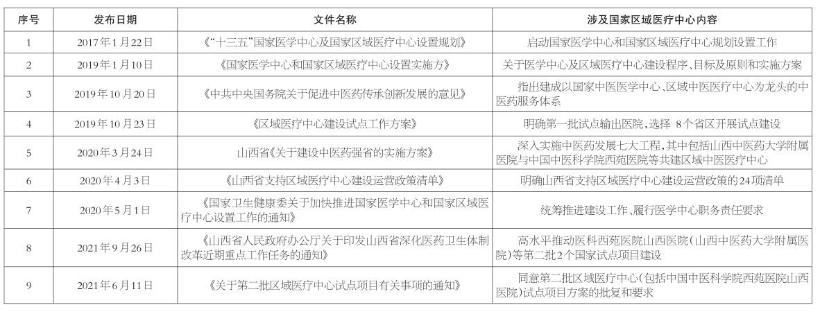 2019年,中央全面深化改革委员会第九次会议通过《区域医疗中心建设试点工作方案》,这是解决我国民生问题的重大战略部署,也是提升医疗卫生欠发达地区基本医疗服务公平性和可及性的关键举措。中国中医科学院西苑医院山西医院(山西中医药大学附属医院)是第二批国家区域医疗中心建设试点单位。第一批区域医疗中心建设单位大多是一院对一院的帮扶,尚无成熟经验,中医区域医疗中心建设更是处于探索阶段。如何在试点运营期促进国家先进的中医优势医疗资源合理布局,使国家队的中医先进诊疗技术、管理经验更好地服务三晋百姓,需要在具体问题中不断探索和实践。