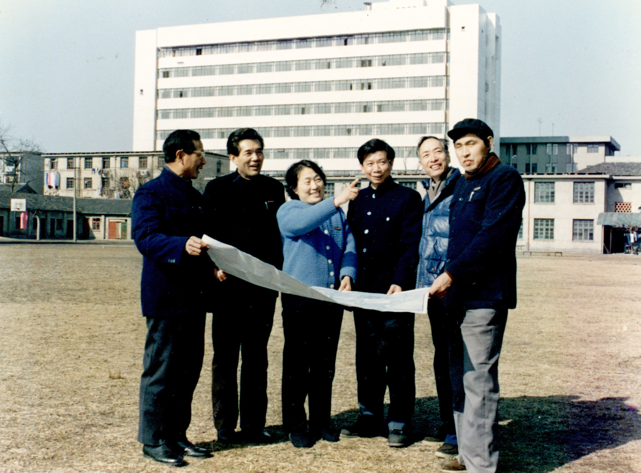 1988年,时任浙江中医学院院长葛琳仪(左三)与学院领导研究学院发展规划。