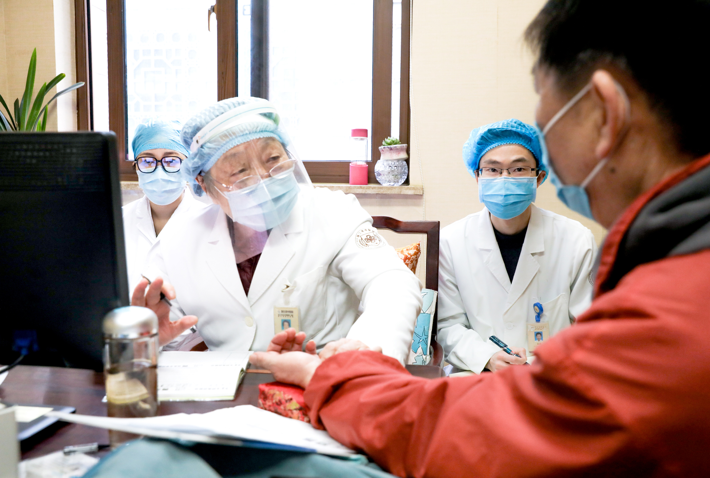 葛琳仪(中)在工作室临证带教。
