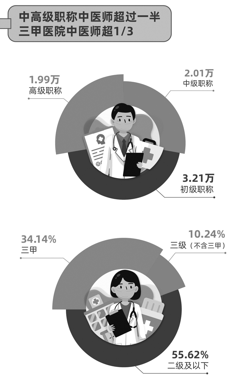 报告显示7.2万余名提供在线问诊服务的中医师中,中高级职称者占比超过一半,三甲医院中医师占比超过1/3。