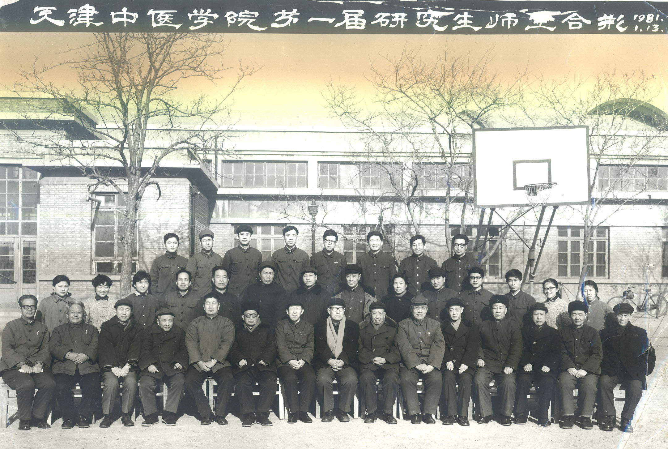 天津中医学院首届研究生师生合影,三排(右一)为张伯礼。