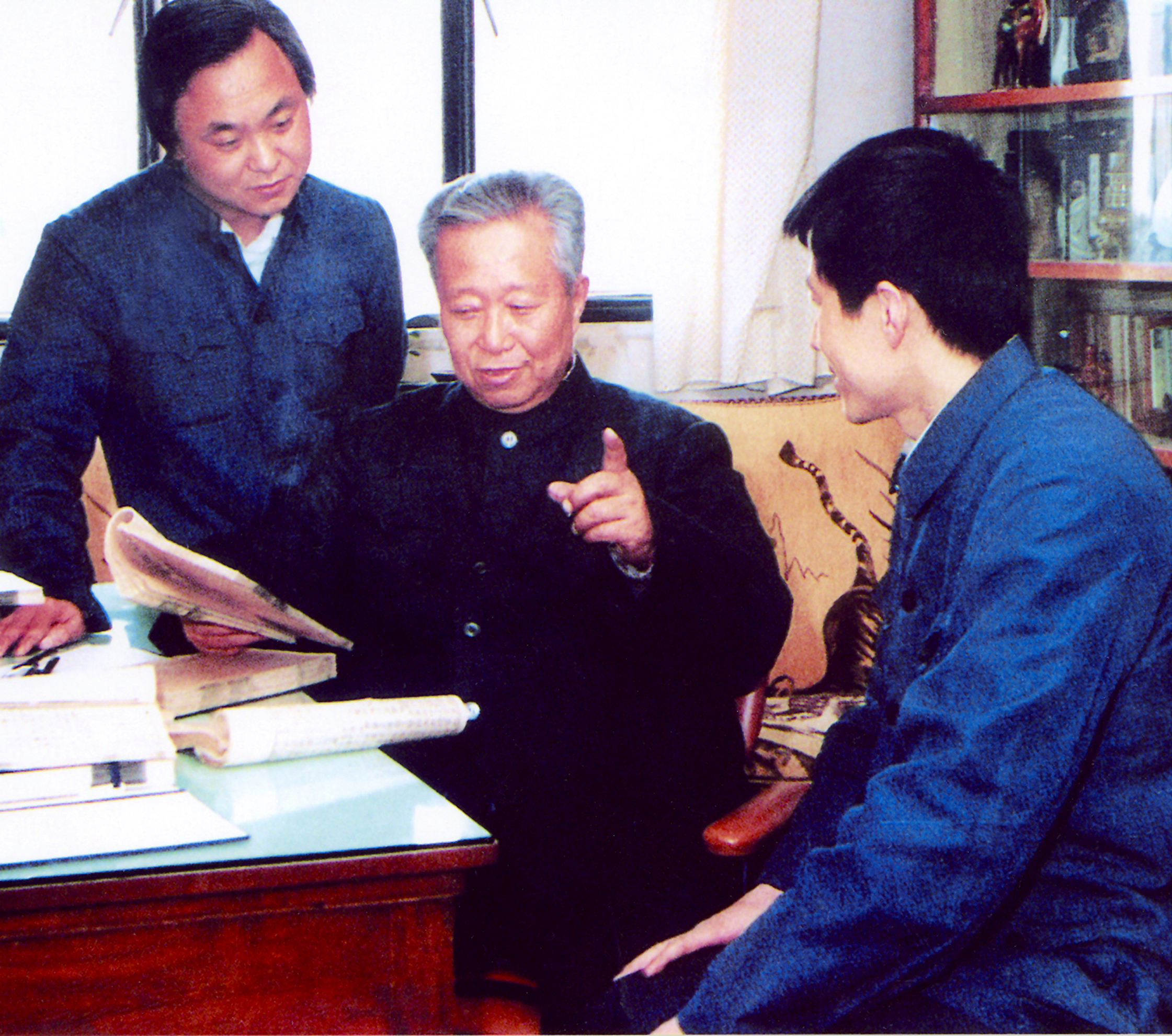 王庆国(左一)跟恩师刘渡舟(中)学习中医经典知识。