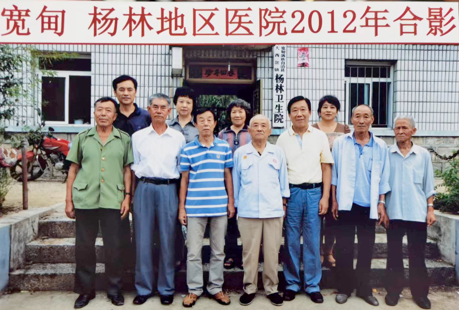 2012年,张静生(前排左三)和下乡时共事的医务人员回宽甸县杨林地区医院探望。