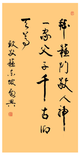 文渊学薮震乾坤。拜苏门,敬人神。一家父子,千古仰天尊。豪放东坡风雅颂,才卓异,业缤纷。