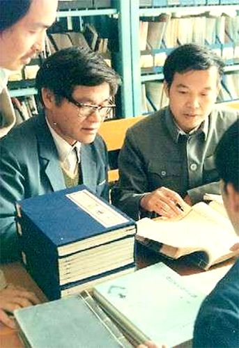 黄瑾明(左)和黄汉儒(右,现为全国名中医)在研讨壮医学。