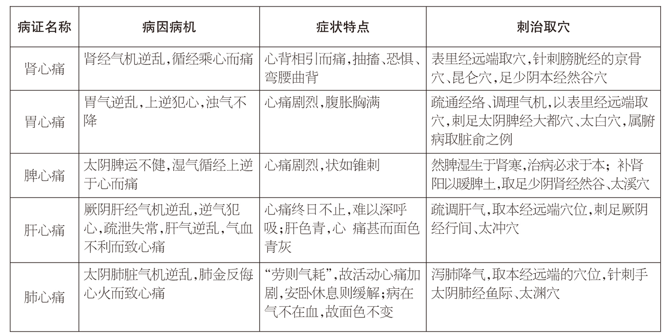 厥心痛五证临床辨治表