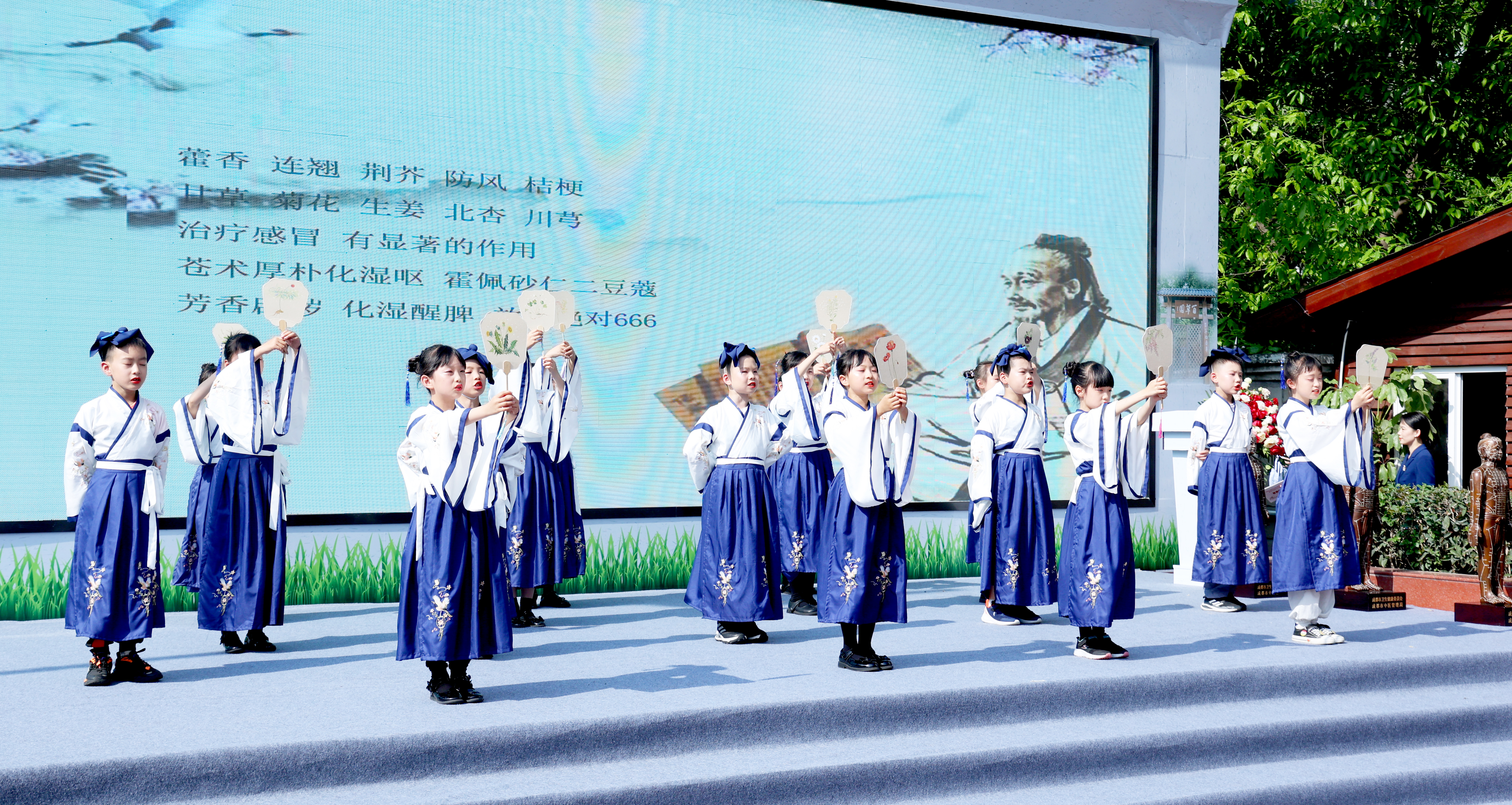 成都市泡桐树小学学生表演节目《医圣传人》。