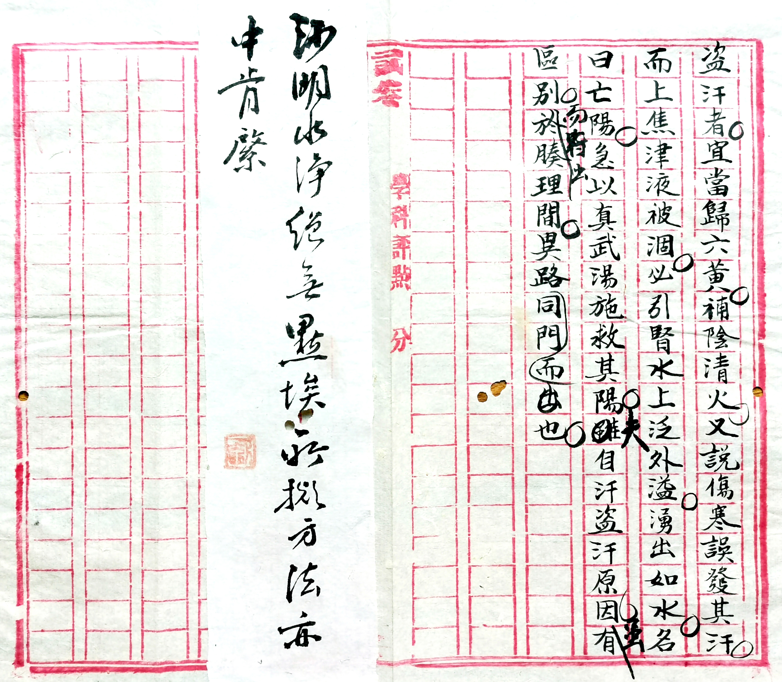 这两道题的难度并不高,相当于现在中医药大学中医专业的本科试题水平,尤其是第二题问自汗盗汗的区别,是《中医内科学》的鉴别诊断考点之一。但是看看这位考生的答案,加标点不到二百字,却将医理阐述得清清楚楚。