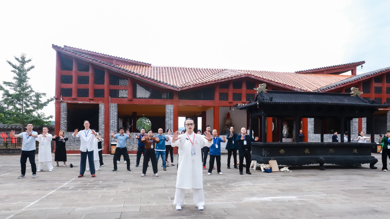 与会嘉宾在广元市普安镇鹤鸣观太素堂学习道家养生桩