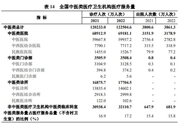 2022年全国中医类医疗卫生机构医疗服务量