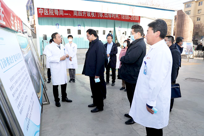 包献华(右二)调研中医医院,院长杨广源(右一)做介绍。