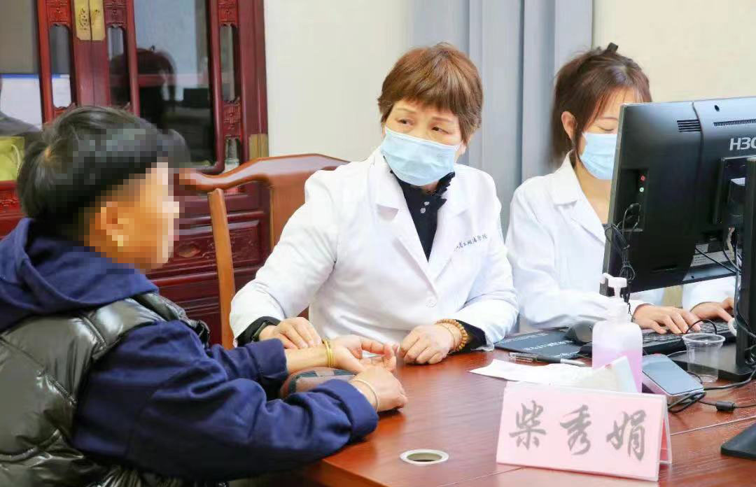 柴秀娟(中)正在给患者把脉。