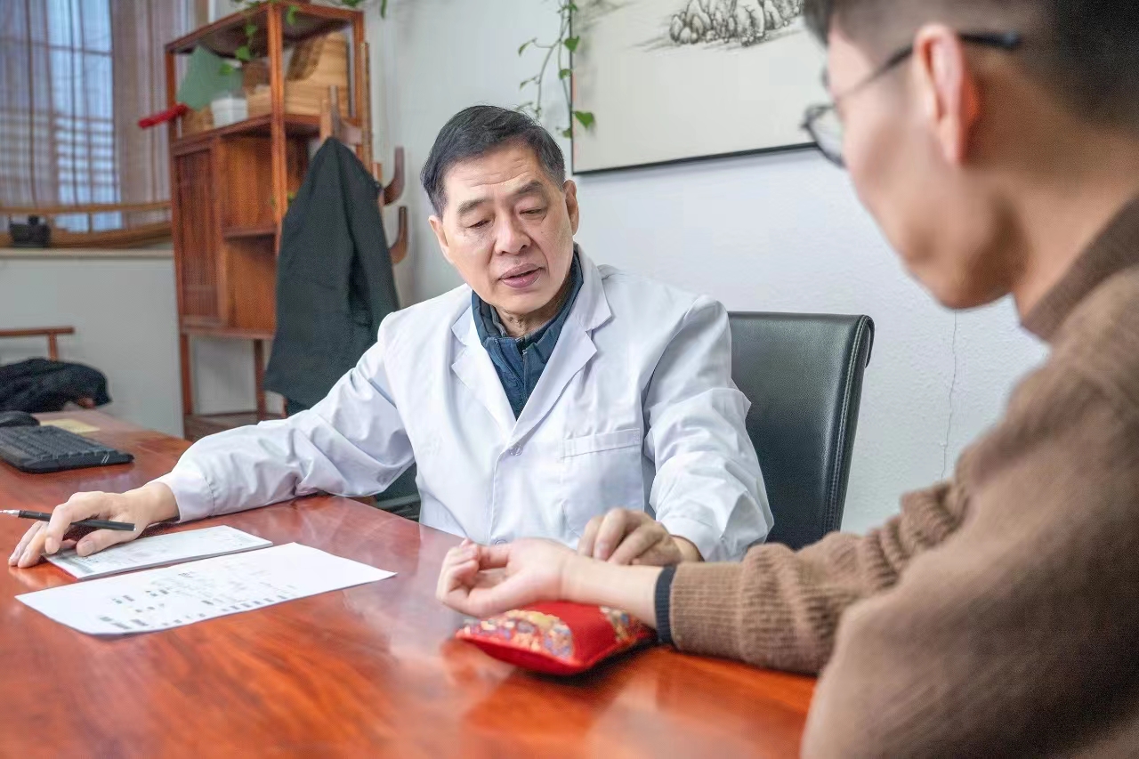 张金玺在为患者诊脉。