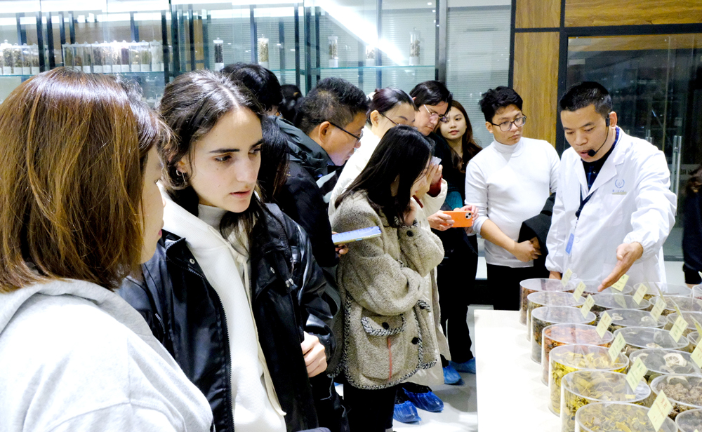 南京中医药大学留学生在中医药企业感知中国、感受中医药文化。