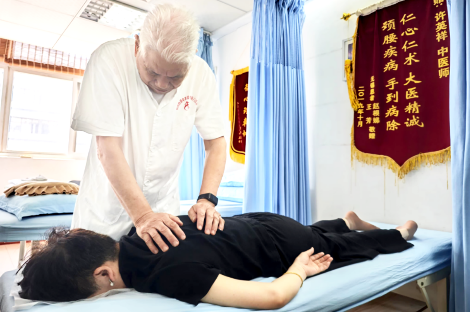 82岁的许英祥出生于浙江省杭州市,现任杭州中兴医院中医骨科门诊部主任,此前他一直在杭州西湖中草堂中医门诊部坐诊。