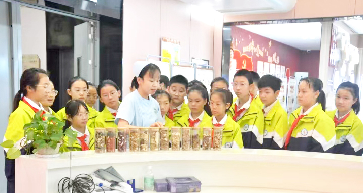 近日,湖北省黄石市大冶市新街小学组织学生前往大冶市中医医院国医馆开展中医药研学活动。活动中,学生们参观了国医馆一楼展厅、中药房,听药师授课,认识常见中草药,参观中药实验室,了解中医药制作新工艺,并体验中医特色诊疗技术。