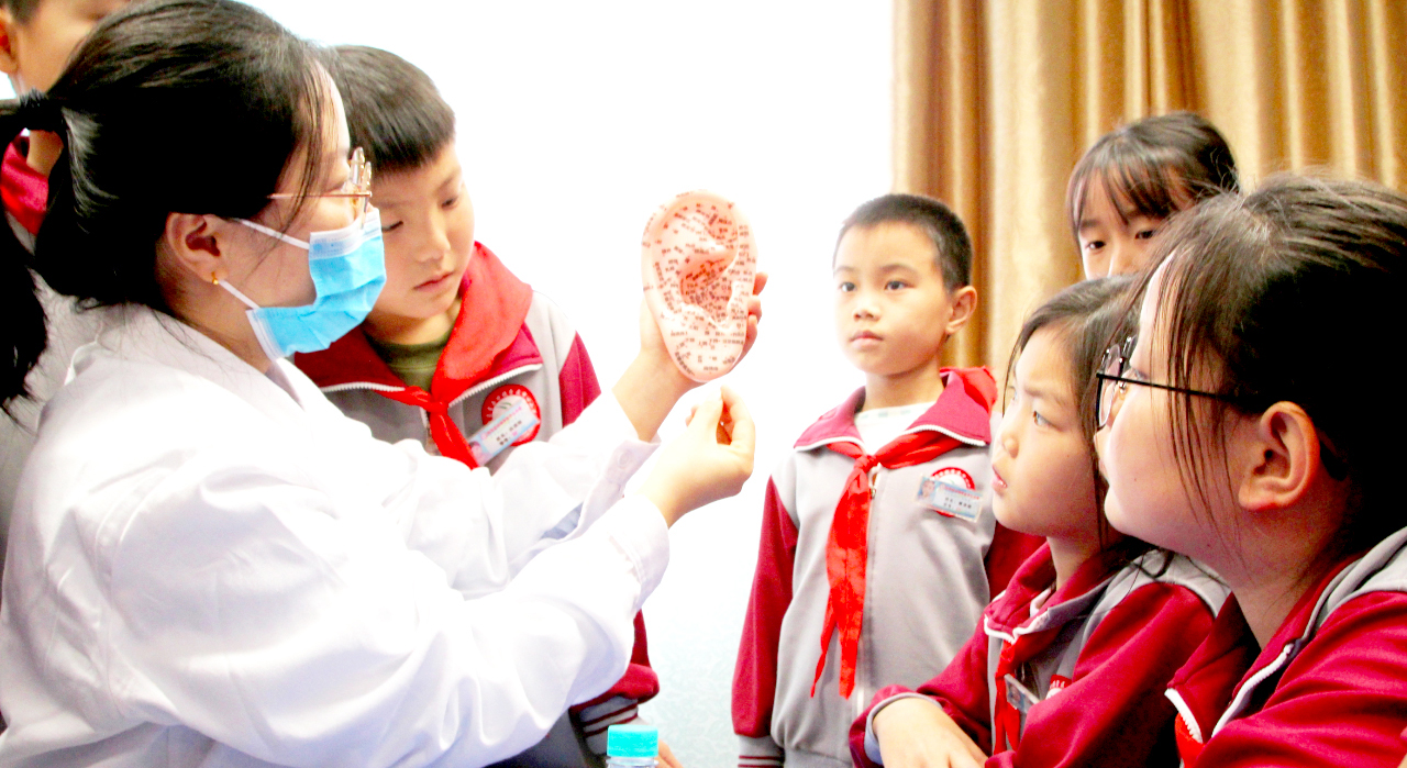 10月22日,山东省高青县田镇街道社区卫生服务中心的中医医师走进田镇学区中心小学开展“中医知识进课堂”活动。中医医师指导小学生辨识中草材、耳部穴位,开展捣药、耳穴压豆、香囊制作等体验活动,让学生近距离感受中医魅力。张磊摄