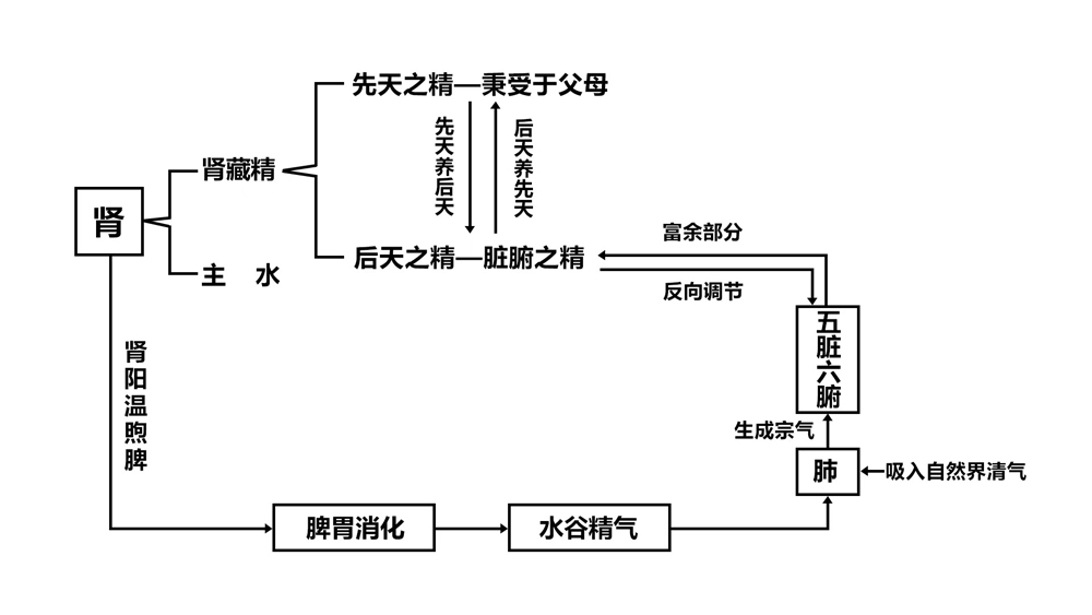 又说,“丈夫八岁,肾气实,发长齿更。二八,肾气盛,天癸至,精气溢泻,阴阳和,故能有子……八八,则齿发去。肾者主水,受五脏六腑之精而藏之,故五脏盛,乃能泻”。