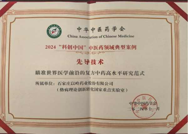 “瞄准世界医学前沿的复方中药高水平研究范式”入选2024“科创中国”中医药领域典型案例
