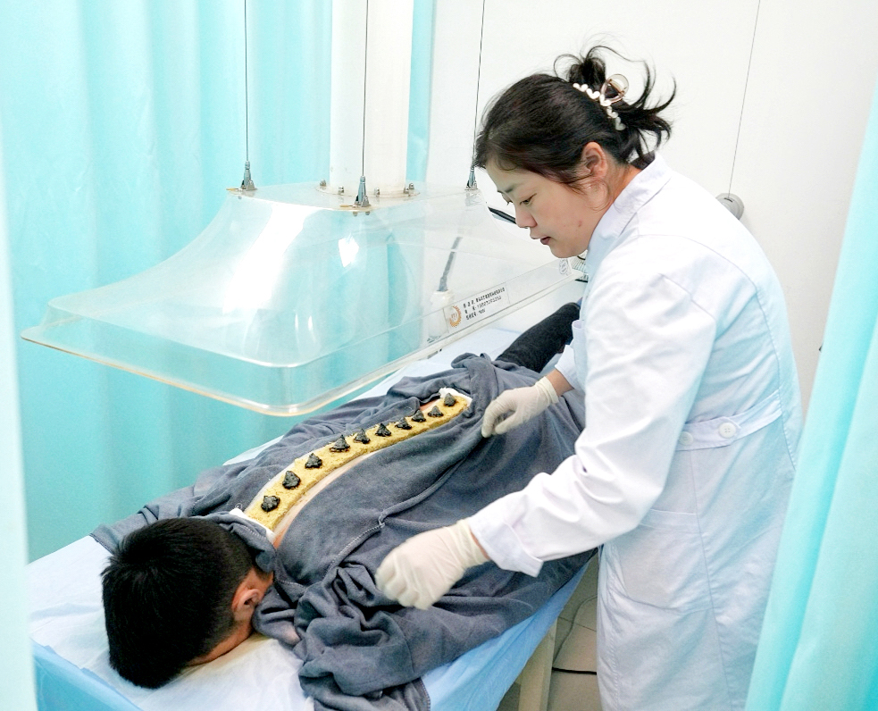 12月23日,江苏宿迁市中医院开展“夏病冬治”三九灸疗活动,在一年中最为寒冷的数九天,将特制的中药膏贴敷于特定穴位,通过药物对穴位的温热刺激,达到温通经络、散寒除湿、调和气血、扶正祛邪的目的。仲启新尚慧摄