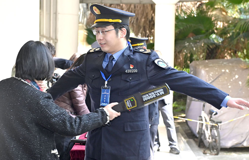 竞赛前,参赛选手正在安检入场。