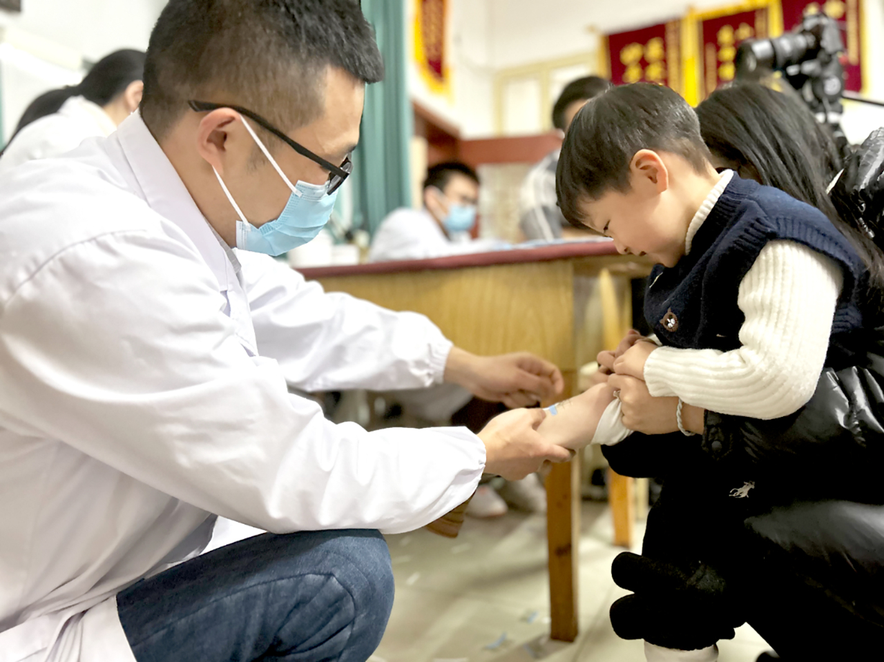 浙江省江山市中医院医疗工作者为儿童做穴位贴敷
